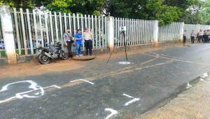 Motor tersebut adalah Kawasaki Pulsar berwarna hitam. Nampak motor bernopol B 4560 KBH. Beberapa bagian motor tersebut nampak rusak.*